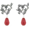 Aretes de poste con piedras colgando en forma de corazón con colibríes y flores.