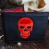 8 compartimentos para tarjetas e identificaciones, 1 compartimento para billetes con división, 2 compartimentos internos. Calavera bordada. Hechura de alta calidad. Ideal para tu portafolio o mochila por su tamaño.