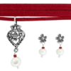 Juego de dije y aretes en forma de corazón y flor con piedras naturales.