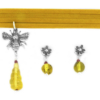 Juego de aretes de flor y dije de abejita con piedras colgando.