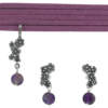 Juego de dije y aretes en forma de ramitos de flores con piedras colgando.