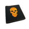 6 ranuras para tarjetas, 2 compartimentos internos. Calavera bordada. Alta calidad en la hechura. Ideal para portafolios y mochilas por su tamaño compacto.