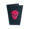 6 ranuras para tarjetas, 2 compartimentos internos. Calavera bordada. Alta calidad en la hechura. Ideal para portafolios y mochilas por su tamaño.